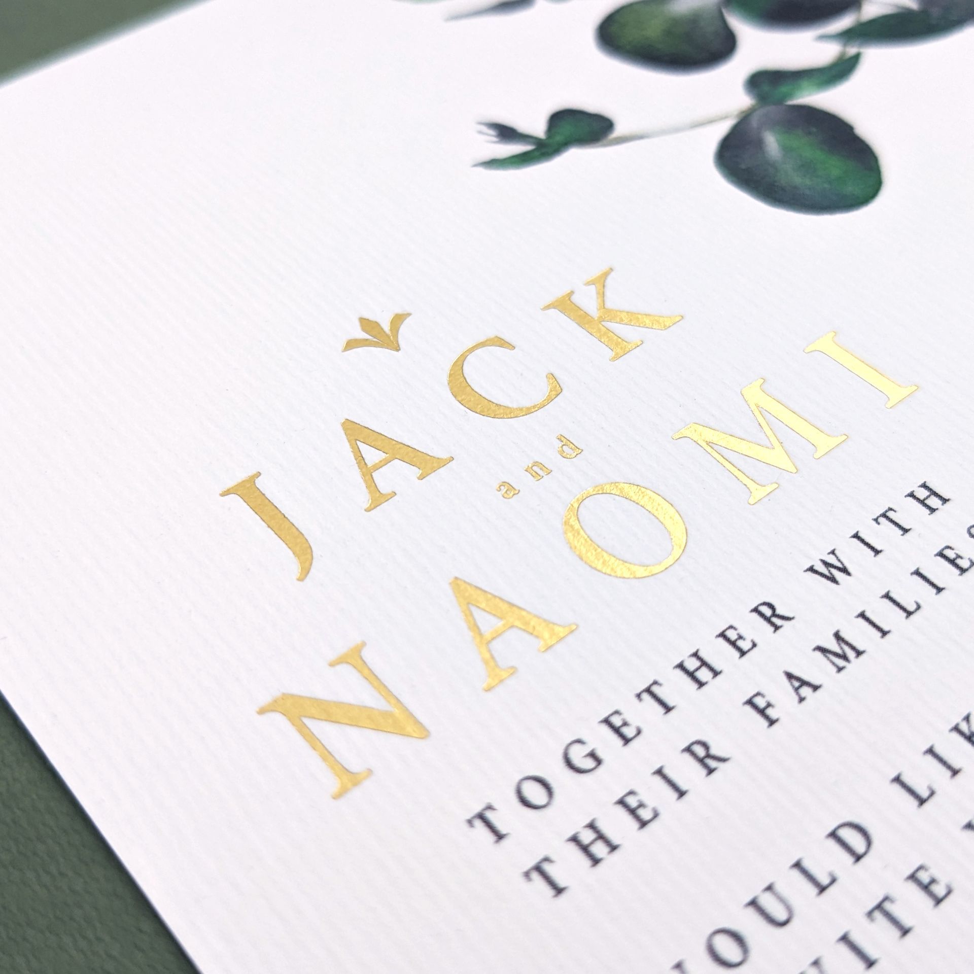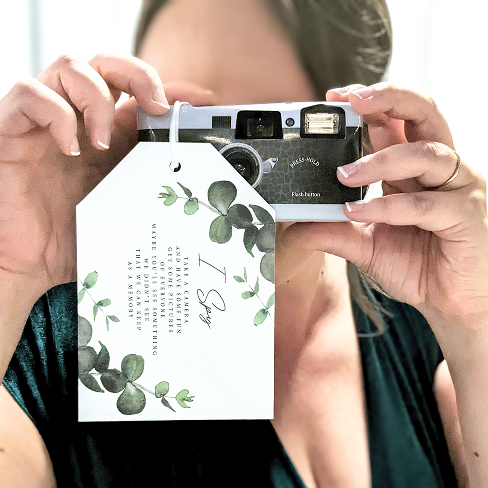 Their stationary package included foiled invitations, name places, signage, and some fun 'I Spy' camera tags, for guests to hunt down those more "personal photos". This stationary package was a particular pleasure to work on as the eucalyptus illustration was hand painted by Naomi's Mum, which made it even more special. I love including friends and family within projects wherever we can!