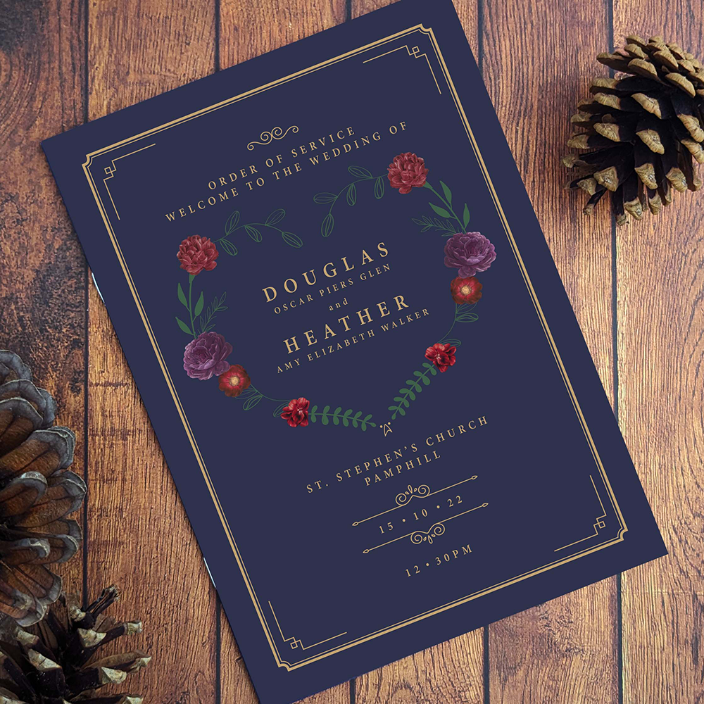 Douglas & Heather's stationery package included book themed invitations (of course with an attached appendix), order of service booklets, named bookmarks (to 'bookmark' the guests seats for the wedding breakfast), and some thank you cards.